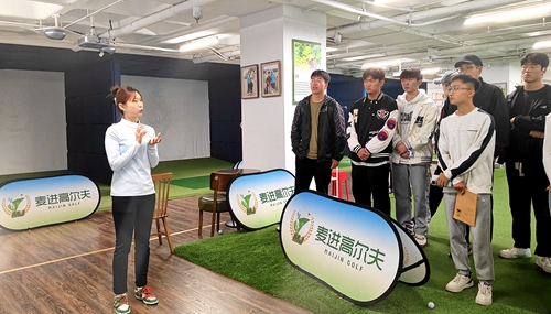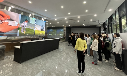 活动中,青岛国际高尔夫俱乐部培训主管徐孝桐为学生讲解了高尔夫球场的构成、球会的组织结构及岗位职责;青岛TED高尔夫运动表现中心经理宋超为学生介绍了TED高尔夫的企业文化及当前国内最为先进的高尔夫教学训练设备;青岛麦进高尔夫学院教练、我校休闲服务与管理专业2021届毕业生段懿桐为学生展示了高尔夫挥杆技术及教练的教学方法。三家风格不同、各具特色的高尔夫企业环境及讲解内容极大丰富了学生们的学习体验与收获。