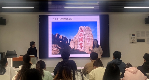 讲座结束后,张娟又走进2023级旅游管理(衔接泰山学院)本科班,面对面为学生作“泰山文化解读”主题讲座,讲述了泰山在中华历史文化中的独特位置与意义,讲解了“秦无字碑”“五岳独尊”等一系列碑碣刻石背后的故事,让学生不仅体验到了“五岳独尊”的独特气势,也领略了“金牌导游”的讲解魅力,对新时代“文旅人”有了更加深刻的认知。