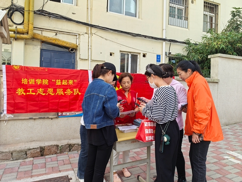 为持续推进社区党建共建,深入落实“双报到”工作,10月16日上午,培训学院党总支、工会联合金湖路街道亢家庄社区党委,组织15位教工党员、志愿者在我校市南校区参与了“百场活动进社区第93期”志愿服务活动。