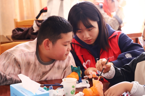 活动伊始,志愿者详细介绍了泥塑文化的起源、发展、地域特色以及文化内涵,激发孩子们学习体验泥塑文化的兴趣,并通过展示憨态可掬的“泥老虎”,引导孩子们感受“型、色、声、动”四者兼备的艺术趣味。文化体验环节中,小朋友们在志愿者的指导下,心无旁骛专注在彩绘泥老虎的世界里,小心翼翼地为白色的泥胚披上五彩斑斓的外衣,孩子们充分发挥自己的想象力与创造力,绘制出了一只只色彩绚丽、栩栩如生、独一无二的“泥老虎”作品,增进了对传统非遗文化的了解和认识,更在孩子们稚嫩的心里种下对美的追求与对传统的尊重。