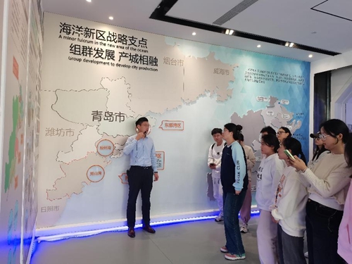 活动中,师生一行随园区负责人来到光谷产业园展示大厅,在讲解员的介绍下全面了解了青岛市软件等信息技术产业的发展规划情况、信息技术发展现状和产业园区的发展历程、规划布局、产业方向等,学习了信息技术企业的运营模式、岗位构成等,深刻体会了企业生产制造智能化、园区运营智慧化、工作环境人性化的鲜明特点。光谷产业园高级项目总监宋文杰和项目经理李胜杰对学生提出的问题逐一进行了讲解。