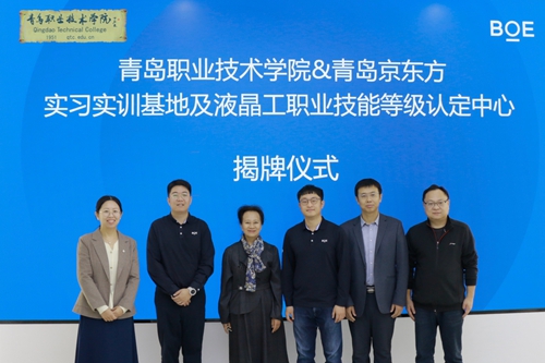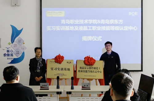 随后,李明杰和李滨共同为实习实训基地和液晶工职业技能等级认定中心揭牌。仪式结束后,青岛京东光电科技有限公司组织171名员工在基地进行液晶工认证考试。此次考试标志着双方正式开启了产教融合的全新篇章。