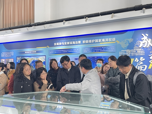 在国家深海基地管理中心,教师们参观了深海之路科普馆、深海基地成就馆、深海车间等,通过展板、沙盘、模型、多媒体等多种形式,切身感受大国重器“蛟龙号”的风采,体悟中国载人深潜精神,直观了解了我国在深海探测领域取得的重大成就,领略了我国深海大洋工作者的时代风貌。大家纷纷表示深受感染、倍感振奋,作为思政课教师,要把中国载人深潜精神融入思政教育,积极服务海洋强国建设,努力培养为全面推进强国建设、民族复兴伟业贡献力量的时代新人。