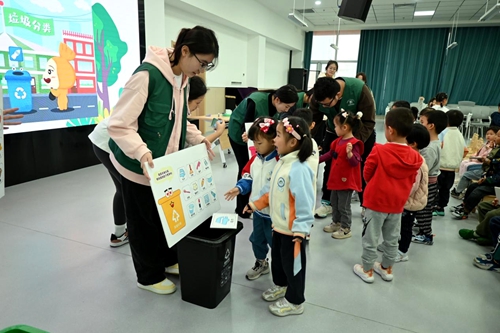 小朋友们现场体验垃圾分类