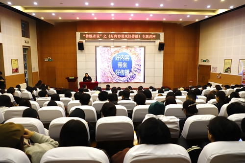 11月14日,学校在报告厅举办“传媒者说”之《好内容带来好传播》专题讲座。讲座特邀国内一线视频创意媒体工作室“仁甲看见”创始人卢晖主讲。宣传部、校融媒体中心、各二级学院分管宣传工作领导及新媒体团队师生代表共200余人参加讲座。