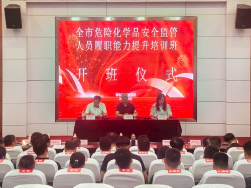 8月20日上午,全市危险化学品安全监管人员履职能力提升培训班开班仪式在我校举行。市应急管理局党委委员、副局长吴法先,校党委委员、人事处处长田秀丽出席仪式,来自全市各区市应急管理局的44名学员参加仪式。