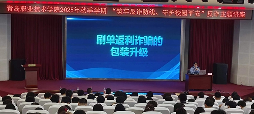 为切实提升师生防范电信网络诈骗的意识与能力,构建平安和谐校园环境,10月14日下午,安保处、学工部在学校艺术厅举办“筑牢防诈防线、守护校园平安”反诈主题讲座。讲座邀请黄岛区公安局刑侦大队六中队副中队长纪国华、三级警长胡铭担任主讲嘉宾。学校2025级新生代表近400人参加了讲座。