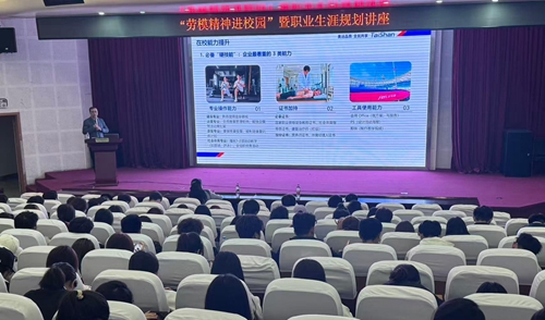 讲座中,刘祥峰分享了他获得“乐陵市劳动模范”荣誉的心路历程,向学生们讲述了在工作中如何坚持、如何通过学习把握机会达到目标,并讲述了不怕吃苦、敢于付出的劳模精神。作为资深人力资源工作者,刘祥峰从泰山集团的企业文化、当前就业形势、在校能力提升、就业择业观等方面向在座师生进行了具体阐释,为在校生提供了个性化的职业规划建议。