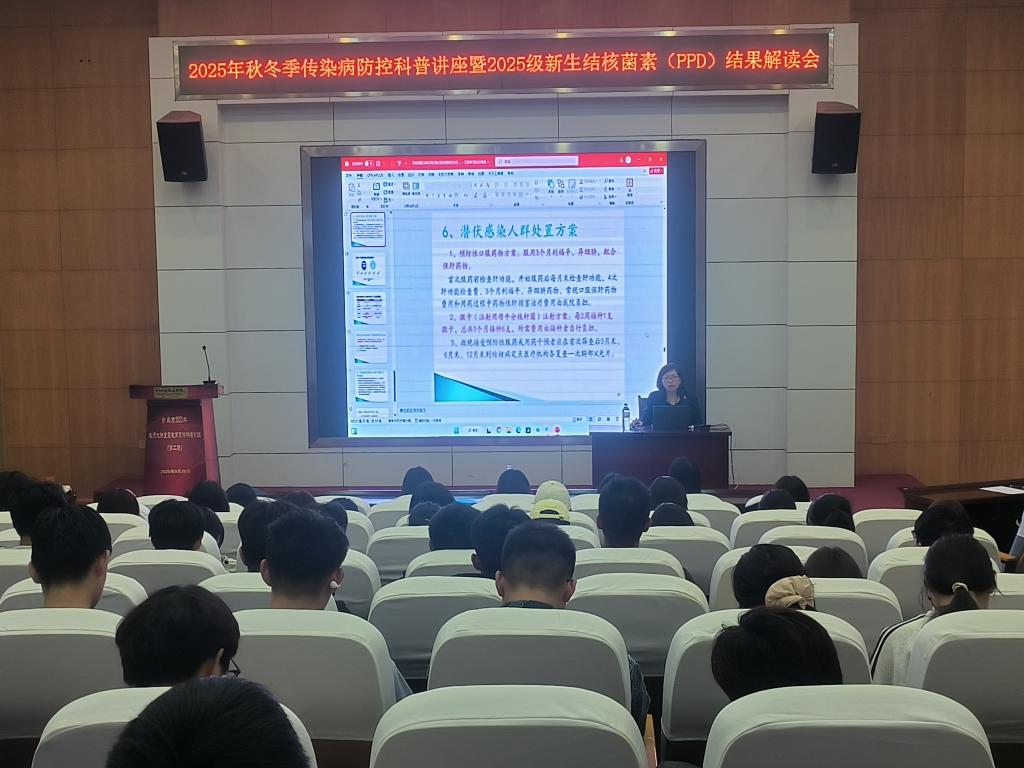 此次秋冬季传染病防控科普讲座暨PPD结果解读会,有效提升了我校师生对常见传染病的认知水平和防控能力,为构建平安健康校园奠定了坚实基础。下一步,学校将持续加强校园传染病防控工作,常态化开展科普宣传、隐患排查等工作,全力守护师生身体健康和生命安全。