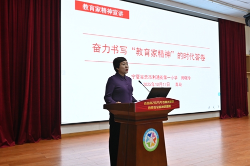 教育部2025年教育家精神巡回宣讲团成员,全国最美教师、全国优秀教育工作者、宁夏吴忠市利通街第一小学党总支书记周晓玲老师以《奋力书写“教育家精神”的时代答卷》为题,结合实践做法展现了教育家精神的落地路径。她打造“鸿雁团队”教研组,以“雁阵效应”凝聚教师协作力;依托自治区级“周晓玲名师工作室”,搭建起区域教师成长平台,通过示范课、专题研讨等形式辐射优质教育资源;带领团队深度参与教育部课程改革研究,将课改理念转化为课堂教学的具体方法,推动教学质量持续提升。一系列扎实举措下,学校教师成长成效显著,在全国及省市级教学竞赛、课题研究评选中屡获佳绩,生动践行了为党育人、为国育才的教育使命。青岛西海岸新区文汇中学教师、齐鲁名师建设工程人选、青岛市学科带头人周文君,青岛西海岸新区大村小学教师、山东省特级教师、齐鲁名师建设工程人选臧科运,分别围绕《从“经师”到“人师”,我的教育求索之路》《践行教育家精神 做一线幸福教师》作了经验分享,他们以自身成长历程为例,不仅分享了教师专业发展的关键方法,更彰显了基层教师在平凡岗位上践行教育家精神的坚定担当。