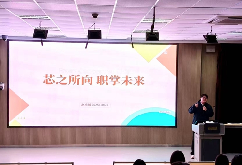 赵彦博聚焦集成电路专业领域解析芯片制造全流程,为向同学们剖析了行业机遇与技能提升方法,分享了专业技能打磨、行业资源整合的秘籍,勾勒出职业发展蓝图,并与现场集成电路技术专业学生展开了热烈讨论。