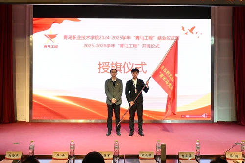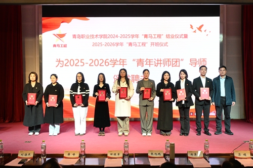 仪式上,田旺军为学校2025-2026学年“青年讲师团”成员颁发聘书。张旭鹏为2025-2026学年“青年马克思主义者培养工程”培训班授旗,各二级学院党总支相关负责人为本学院“青马工程”培训班授旗。“青年讲师团”导师李红芳,2024-2025学年“青马工程”优秀学员、青岛市团代表、旅游学院李苡萱,2025-2026学年“青马工程”学员代表、生物与化工学院邢昊宇分别作交流发言。