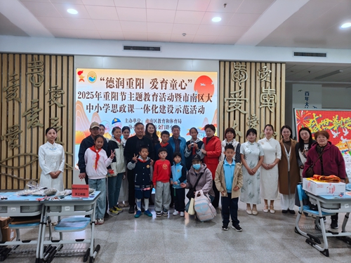 为深入传承和弘扬中华优秀传统文化,推进大中小学思政课一体化建设,10月28日,由市南区教体局主办的“德润重阳爱育童心”2025年重阳节主题活动暨青岛市市南区大中小学思政课一体化建设示范活动在青岛金门路小学开展。作为思政一体化实践基地成员之一,旅游学院师生受邀参加路演。
