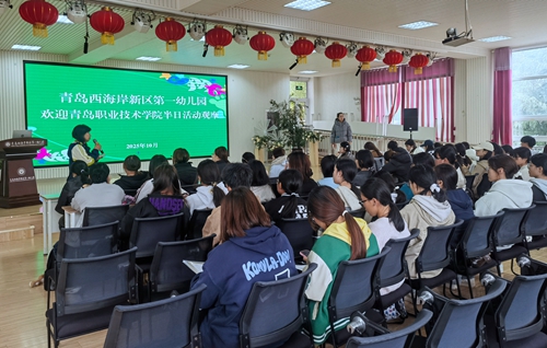 10月31日,教育学院组织2025级学前教育专业全体新生,赴校企合作单位——青岛西海岸新区第一幼儿园长白山路分园开展职业认知实践活动。