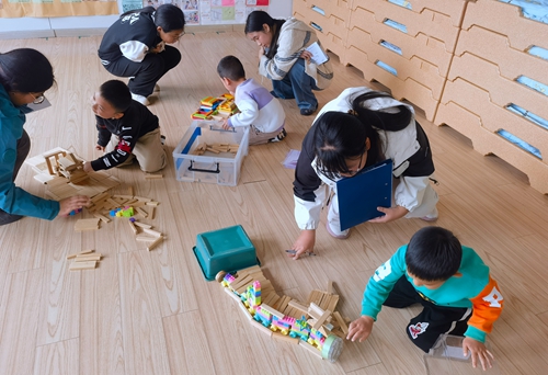 学生观摩幼儿游戏