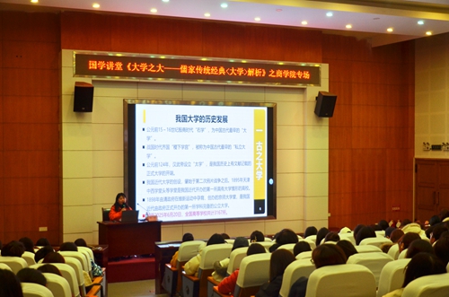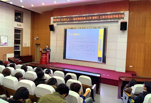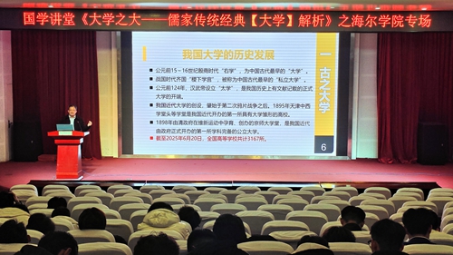 讲座结合大一学生学情,以“学生心目中的理想大学”“读大学的目的”等问题导入,引发学生对大学之道的思考。讲座从古之大学的教学内容、儒学经典《大学》中“三纲领”“八条目”所架构的“大学之道”以及结合现实延伸的教育之道、人生之道进行了讲解。讲座中,授课教师深入浅出地启发学生们深刻理解“大学之道,在明明德,在亲民,在止于至善”的内涵,引导学生树立正确的人生观、世界观、价值观,努力成为具有崇高价值追求的时代新人。讲座现场国学知识丰富,学习氛围浓厚,受到学生们的一致好评。