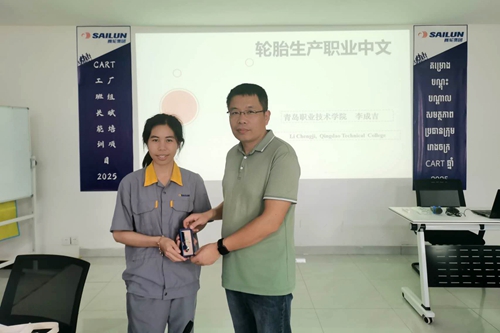 为高质量完成培训任务,信息学院在培训前多次组织集体备课,针对赛轮海外企业生产设备参数,专门采购相应型号实验器材,进行训前准备。同时,针对培训需求和内容,邀请赛轮集团负责人员来校研讨,并多次与海外工厂人资部门进行线上商讨,确保培训内容实用且有针对性。此外,根据参训学员的专业及中文实际水平,此次培训还采用了灵活多样的授课方式,确保每位参训学员都有收获。培训期间,培训团与公司的柬埔寨籍中文培训讲师曾如意进行了交流,了解了企业的中文培训体系及状况并根据柬方中文培训实际,向柬方教师赠送了相关中文培训资料。