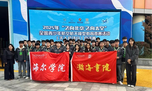 10月26日至11月1日,由国家体育总局航空⽆线电模型运动管理中⼼、中国航空运动协会主办的2025年“飞向北京·飞向太空”全国青少年航空航天模型教育竞赛活动(无人机项目)总决赛在青岛西海岸新区举办。我校海尔学院协同赛事承办单位青岛市科技馆,精心选拔45名学生志愿者深度参与此次国家级赛事的服务工作。
