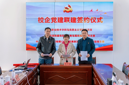 签约仪式上,马克思主义学院党总支第一党支部与济青高速铁路有限公司青岛现场指挥部党支部、中铁二十五局集团有限公司潍宿高铁至青岛连接线项目党支部围绕党组织建设、资源共享、文化赋能、协同育人等方面进行了深入交流,并签署党建共建联建协议。三方一致表示,将以此次活动为契机,发挥资源优势,进一步推动校企合作、赋能区域经济高质量发展。