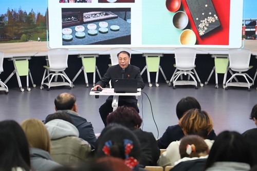 11月6日下午,艺术学院在全景教室举办“故宫文创设计专题交流活动”。活动特邀中国书画院院士、中国王羲之书画研究院执行院长左东旭教授主讲,全国劳动模范、我校产业教授皮进军同时受邀出席活动。艺术学院全体班子成员、师生代表参加活动。