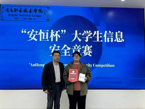 安恒信息在竞赛前为选手开展了赛前培训交流活动,并与信息学院共同商讨确定了竞赛形式与内容。竞赛设置信息安全专业赛题与CTF赛题,全面检验选手的理论素养与实践能力。竞赛过程中,评委们严格评审,确保结果公平公正。经过激烈角逐,一批优秀选手脱颖而出。青岛工程职业学院的选手表现突出,夺得一等奖;我校选手也有不俗表现,获得二等奖、三等奖。赛后,信息学院党总支副书记李海民为获奖选手和参赛选手们颁发了证书和奖品,现场气氛热烈。