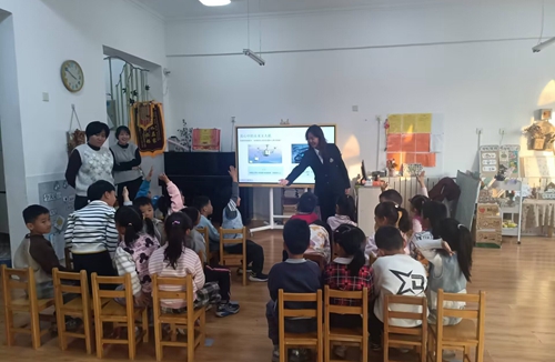 此次活动紧扣幼儿认知特点,以“观看+互动+体验”的形式开展。活动中,姜敬浦等学生小讲师通过生动有趣的动画短片和色彩鲜明的无人机图片,用浅显易懂、充满童趣的语言为孩子们讲解了无人机的基本概念和飞行原理。“无人机为什么会飞?”“无人机到底长什么样子?”在互动提问环节,孩子们争相举手、踊跃发言,天马行空的问题充满了奇思妙想,小讲师们则耐心引导、一一解答,在轻松愉快的对话中点燃了孩子们对科学探索的好奇心。