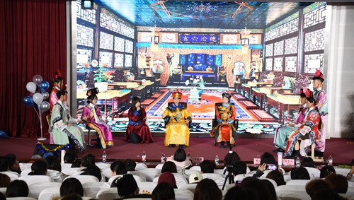 热场环节,节目《光影青春》“点燃”现场,紧随其后的《你要跳舞吗》以轻快旋律带动全场律动,舞狮队以腾挪辗转的雄健姿态,诠释体育专业的力量之美。晚会以“青春当‘燃’·体健启新程”拉开序章:情景剧《百年体育史》以时空对话的形式,回溯体育发展脉络;歌曲串烧《飘向北方》《架子鼓》用歌声传递少年志。第二篇章“艺体交融·少年展万象”则是创意与活力的碰撞:教育学院带来的《战台风》以古筝的韵律,演绎“力与美”的交响;小品《甄嬛传之外卖情缘》以诙谐剧情解构校园生活,引得全场捧腹;武术表演成为全场焦点,将传统武术的力与美展现得淋漓尽致,引得台下掌声雷动。“薪火向光·逐梦向未来”篇章中,《如愿》的旋律响起,诉说着“以青春赴时代之约”的信念,最后,师生们挥动荧光棒,在“相亲相爱”的歌声里,将晚会的温情推向高潮。