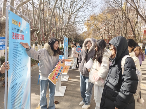 为加强学生法治素养,响应学校法治宣传教育月号召,11月28日,校学生会生活权益部在学校海韵厅门口举办“我为同学做实事 青春与法治同行”大学生法律指南宣传教育活动,吸引近200名学生踊跃参与。