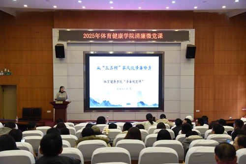 11月27日,体育健康学院在报告厅开展“清廉微讲堂”活动。体育健康学院党总支书记张慧以“从三苏祠家风谈清廉修身”为题作专题分享,体育健康学院全体教职工参加了此次学习。