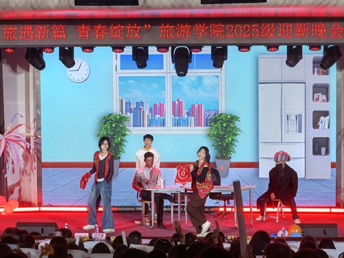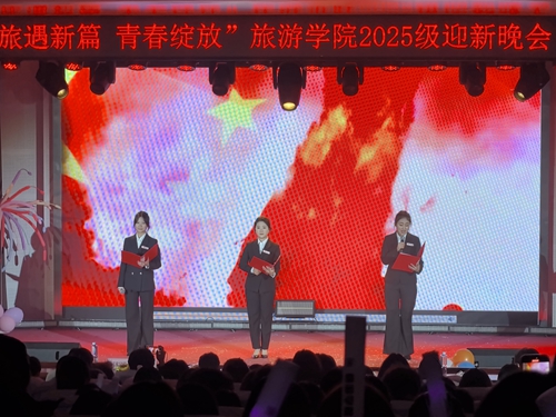 12月5日,旅游学院在艺术厅举办“旅遇新篇 青春绽放”2025年迎新晚会。旅游学院相关负责人、学工团队与2025级新生欢聚一堂,共赴青春之约。整场晚会节目精彩纷呈,展现出旅游学院学子青春昂扬、奋发向上的精神风貌。