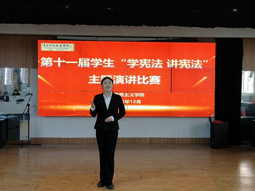 12月3日,第十一届“学宪法 讲宪法”主题演讲比赛在比邻楼101室举行。参赛选手结合自身经历与鲜活事例,讲述宪法与社会、个人的紧密联系,展现了良好的法治素养与精神风貌。最终,商学院吴艺欣等3名学生获得一等奖,商学院吴英爽等6名学生获得二等奖,生物与化工学院李姿诺等10名学生获得三等奖。同日,模拟法庭教室内宪法知识竞赛火热开展,9支队伍同台竞技、各展风采,选手们经过必答、选答、抢答3个环节的激烈角逐,最终,商学院的“好运来”团队斩获团体一等奖。两项竞赛均由学校党委宣传部、马克思主义学院主办,“匠心·匠星”社团、法律服务中心、法律咨询与援助中心、法律大讲堂承办,不仅为全省“学宪法 讲宪法”竞赛选拔了优秀后备力量,更增强了学生们的宪法意识,为法治校园建设注入鲜活动力。