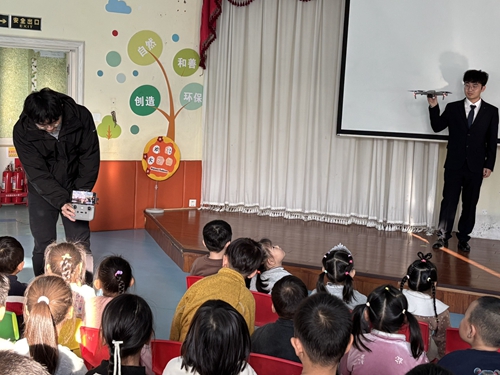 12月4日下午,信息学院“青小信”志愿服务分队5名志愿者走进绿岛幼儿园,以“小小飞行员探秘无人机”为主题开展科普支教活动,为90余名幼儿打造了一堂集趣味、互动与知识于一体的科普无人机启蒙课。