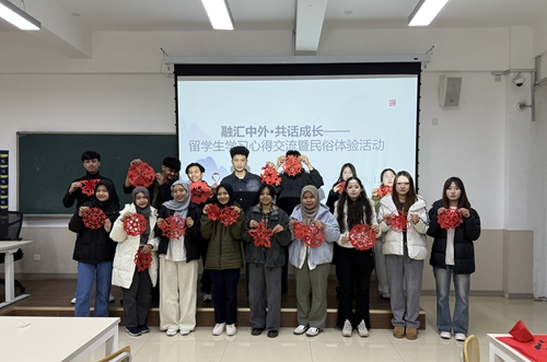 12月10日,信息学院举办“融汇中外·共话成长”——留学生学习心得交流暨民俗体验活动。信息学院师生与留学生齐聚一堂,共同体验剪窗花、写福字等中国新年民俗活动。学校党委副书记、校长邢广陆到场与留学生们进行了亲切交流。