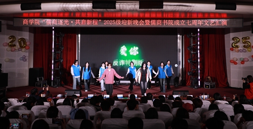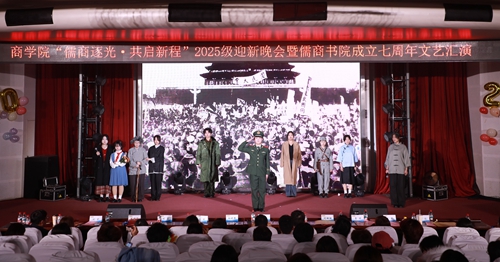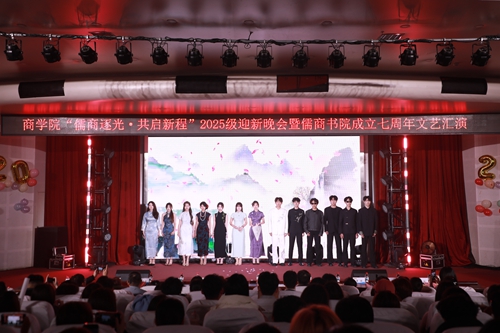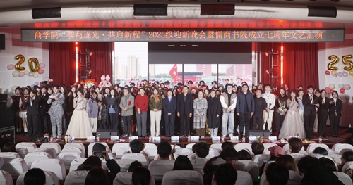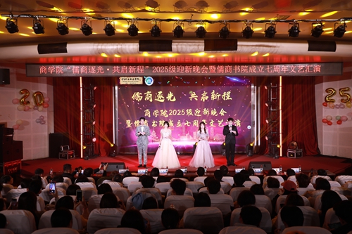 12月11日晚,商学院“儒商逐光,共启新程”2025级迎新晚会暨儒商书院成立七周年文艺汇演在学校艺术厅温情启幕。商学院领导班子、专业教师代表、全体辅导员、公寓管理员与2025级新生代表齐聚现场,共赴青春之约。