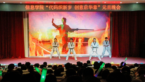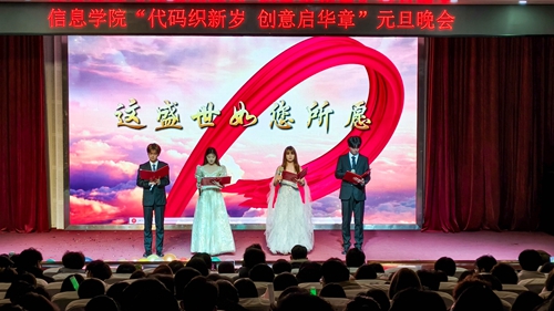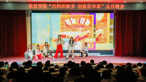 12月14日,信息学院在艺术厅举办“代码织新岁 创意启华章”元旦晚会,信息学院部分学生参与活动。