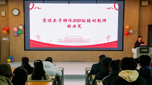 在“雁阵领航育英才•师生同心庆新年”主题活动中,信息学院党总支书记李明杰宣读结对教师聘任文件。随后,信息学院院长常中华、四位党支部书记为受聘教师颁发聘书,信息学院副院长徐占鹏为结对学生代表赠送活页本。此外,上一年结对师生代表张迪和教师孙飞飞分别分享结对经历。李明杰在讲话中介绍了学校党员导师制推行的背景与意义,并感谢四位党支部书记带领本支部教师,在教书育人过程中,发挥省级、校级双带头党支部书记工作室“雁阵”效应,肯定了教师们通过师生结对方式给予学生的思想引导、心理关怀、技能大赛指导、专业引领等方面所发挥的作用,同时对2025级结对工作提出要求。