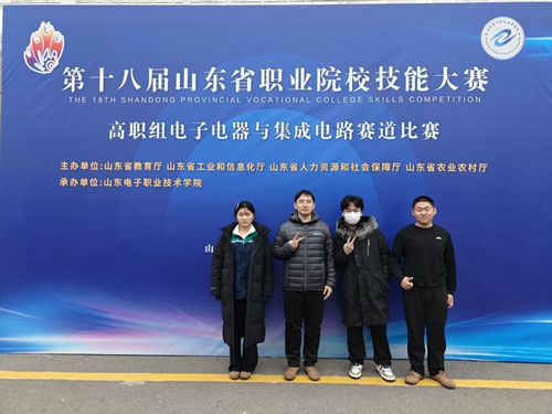12月10日至14日,第十八届山东省职业院校技能大赛高职组电子电器与集成电路赛道在山东电子职业技术学院开赛,共有来自全省54支队伍同场竞技。由我校信息学院王宏伟、刘畅、迟鸣心、邹翔四名同学组成的参赛团队,凭借扎实的专业功底和稳定的赛场发挥,最终斩获大赛三等奖。