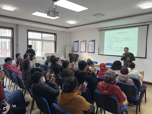 12月18日下午,培训学院与亢家庄社区联合举办“光影绘生活”社区教育中老年特色课堂。此次课程邀请了我校艺术学院退休教师李志强和窦世强围绕手机摄影和钢笔画鉴赏进行授课,吸引了20余位中老年社区居民积极参与。