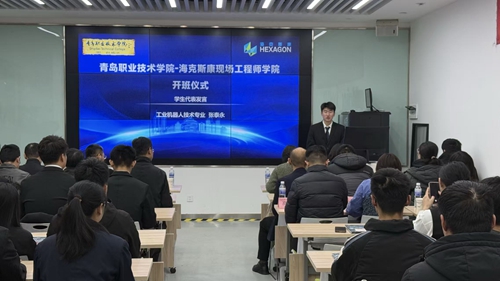 12月25日,“青岛职业技术学院-海克斯康”现场工程师学院第二届(2025级)现场工程师班开班仪式在我校致用楼海尔智慧楼宇全球服务学院举行。海克斯康教育生态事业部运营总监周燕娜等企业相关部门负责人,海尔学院院长孙会扬、党总支副书记杨春旺、副院长李峰、相关教研室主任、骨干教师以及现场工程师班30名学生参加开班仪式。开班仪式由海尔学院党总支副书记吴争主持。