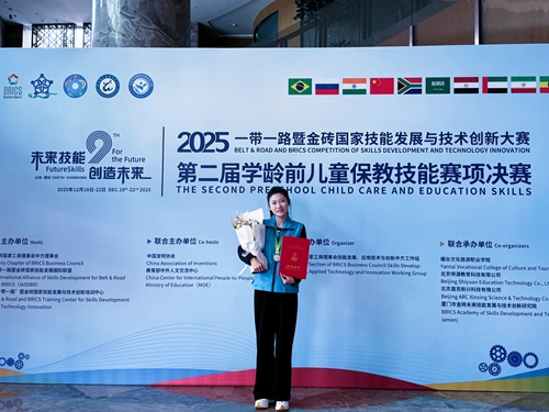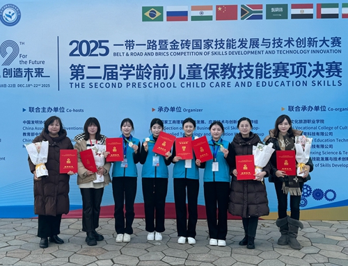 12月18日至22日,2025年“一带一路”暨金砖国家技能发展与技术创新大赛第二届学龄前儿童保教技能赛项决赛在烟台圆满落幕,比赛共吸引151支师生团队参赛。经过激烈角逐,教育学院学前教育专业学生石韶涵、张丽华、张雨婷、马亿嘉所组成的两支参赛队在学生赛中获得二等奖,教师肖楠、封常秀、王辉、李静获“优秀指导教师奖”;教师赵心路在教师组比赛中获得二等奖;我校获优秀组织奖。