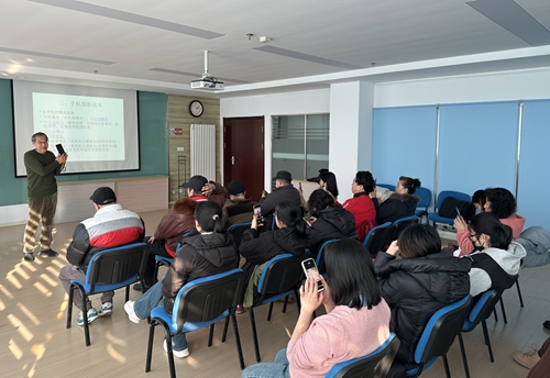12月26日下午,培训学院与泰州路社区联合举办“‘镜’观生活·‘警’防诈骗”社区教育中老年特色课堂。活动邀请我校艺术学院退休教师李志强和商学院“青职反诈先锋”志愿服务队,围绕手机摄影与反诈知识开展授课。30余位中老年社区居民参与。