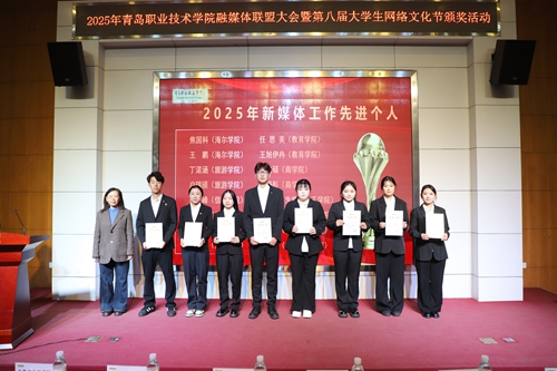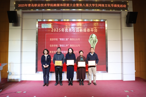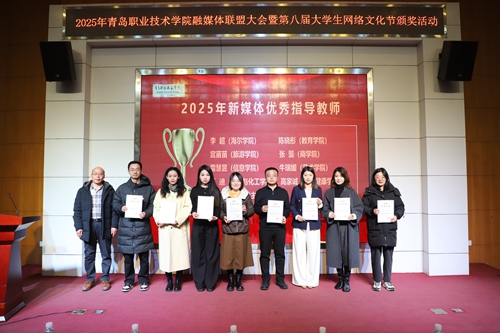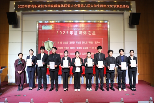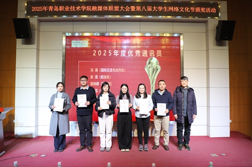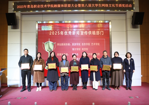 12月30日,学校在报告厅举行2025年度青岛职业技术学院融媒体联盟大会暨第八届大学生网络文化节颁奖活动,对2025年度学校融媒体联盟工作取得突出成绩的单位和个人进行表彰。党委宣传部、学工部、信息技术中心,各二级学院党总支书记、副书记,各融媒体联盟成员单位指导教师、学生代表等共200余人参加大会。