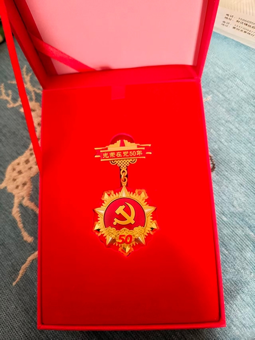 老党员江东旺的光荣在党50周年纪念章