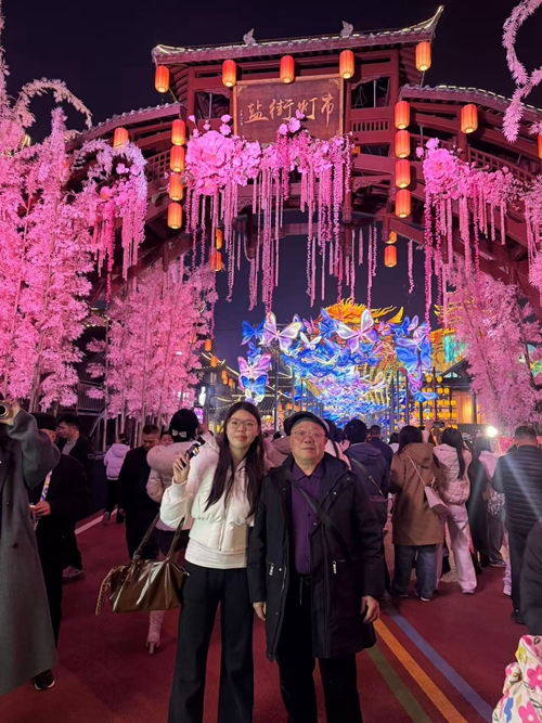 学生与家人共赏自贡灯会
