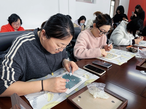 老师们学习制作宋锦珍珠画