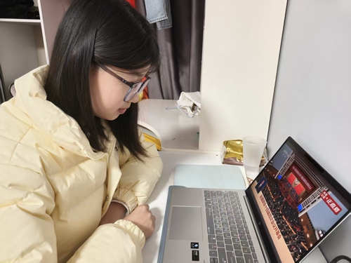 学生们正在观看全国两会