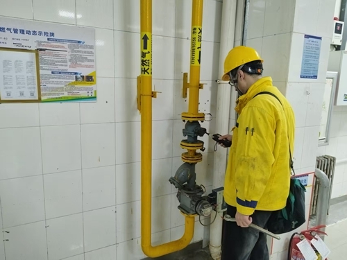 3月5日上午,后勤管理处邀请青岛新奥能源有限公司安全员来校进行餐厅天然气安全使用现场培训,现场讲解了天然气与消防基本常识、安全用气常识、日常常见安全隐患及应急处理措施等内容。培训后并对各食堂的燃气管道及厨房燃气设施设备进行了检查。