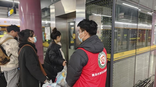 毕守璞在青岛地铁担任志愿者