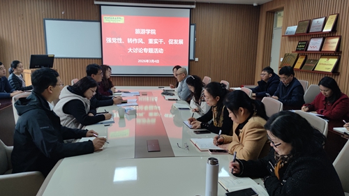 3月4日,旅游学院在闻道楼323会议室召开“强党性、转作风、重实干、促发展”专题大讨论,落实市委及学校相关工作部署,学院全体班子成员、各教研室及部门负责人参会,党总支副书记王耀辉主持会议。