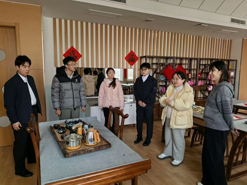 活动期间,旅游学院师生在青科佑爱培训学校相关负责人的陪同下参观了学校的特色手工制品展示区,认真观摩创意手作、非遗文创、编织布艺等精美作品,详细了解作品创作理念、制作流程与美育教学实践成果,深切体会到学校将中华优秀传统文化教学与特殊群体培养相结合的用心与成效。此外,双方围绕茶艺培训开展专题交流研讨,就茶文化课程建设、茶艺技能实训、文旅场景应用等内容深入沟通、交换思路,探讨将茶艺文化融入文旅服务、结合特殊群体技能培养打造特色文旅体验项目的可能性。同时,师生现场观摩了陶艺作品展示与创作过程,近距离感受传统陶艺文化的独特魅力与学校师生秉持的匠心精神,在沉浸式体验中拓宽文化视野、提升综合素养,也对中华优秀传统文化教育的公益价值与社会意义有了更深刻的理解。